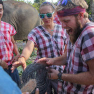 We found a sanctuary that rescues elephants from logging companies and circuses and spent the day learning about these majestic creatures. We started out feeding them and chopped down banana trees for food. Elephants can eat for 20 hours a day, consuming up to 600 pounds of food! To cool them down from the day's sun we got in the mud with them and then rinsed down in the river. It was an unforgettable experience - but one we would not do again. Although these animals were not ridden, upon leaving we couldn't help but notice the next tour group coming in. This level of interaction should not be supported.